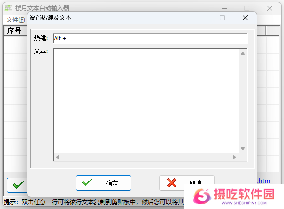 如果您设置的文本较多,自已也不太记得对应热键是什么的话,可以调出软件后,双击这一行,此行的文本就自动复制到了剪贴板中,然后您可以在任意输入框中进行粘贴即可。