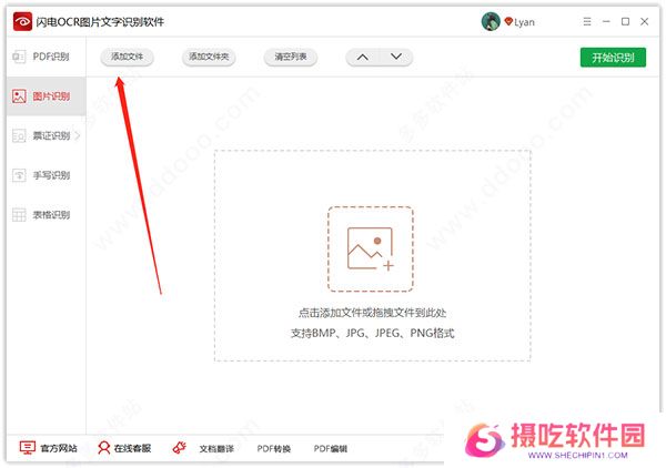 第三步、接下来,点击“添加文件”将需要识别文字的图片添加进来,也可以一键添加多张图片进行识别。