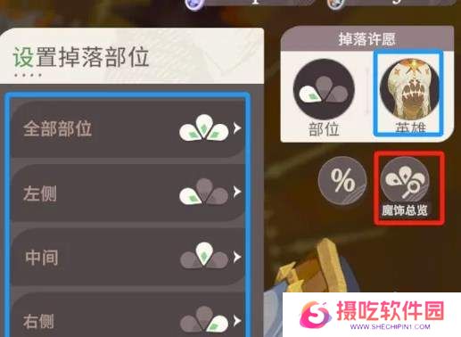 可以在关卡内魔饰总览查询自己英雄魔试佩戴情况,超过关卡超过22级可以选择具体英雄的配饰进行许愿。