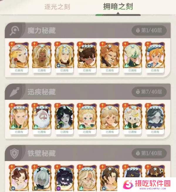 每个秘藏内都会有不同的英雄加成,有的英雄会出现在多个场景中